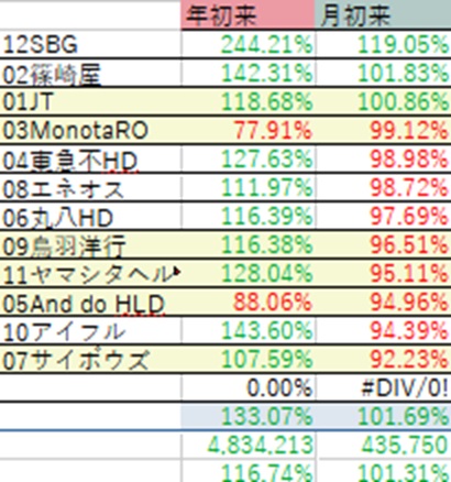 去年8月の利上げショックでは1日で200万円以上下がりました。その時はキャッシュがなく、買い増しはしていませんが、もちろん売ったりはしていません。今年4月のショックでは数日にわたりやはり相当額が下がりましたが、この時はそれまでの主力知多鋼業を全売却した直後で60%以上ものキャッシュがあり、どしどし買い増ししました。これをやってみたかった、という。おかげで今年のパフォーマンスはいい。今回も生かしたい。もちろん底値を狙おうとはせず、あるいは急落時に即買い向かってしまうこともしない。焦らず落ち着いて、少しずつ、です。どれくらい資産が減るんだろ今回は。もうまったく気にしない、が常に正解なんですけどね…経験上。