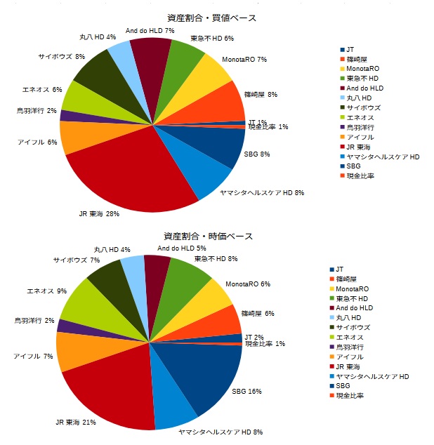 ・12月…年末に急に東海旅客鉄道をポートフォリオ1位まで、キャッシュの全てを費やし買い付け。先月売られ過ぎたソフトバンクGやや巻き返し。丸八HD上場来高値。